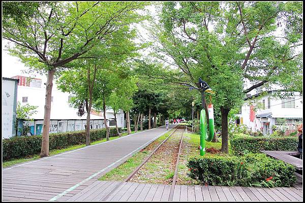 而他的旁邊就是台東市區最令人稱羨之一的鐵道步道